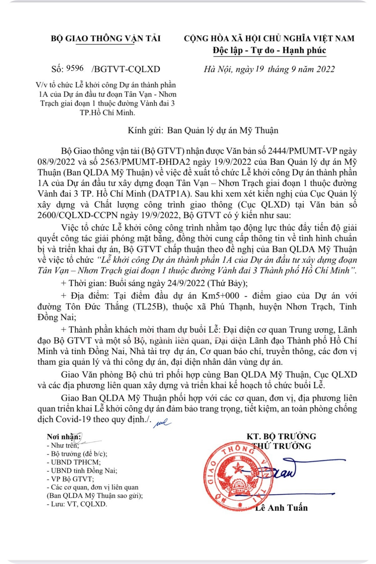 Ngày 24/09/2022 tới sẽ sẽ làm lễ động thổ khởi công cầu Nhơn Trạch nối Tp. Hồ Chí Minh với Đồng Nai thuộc dự án